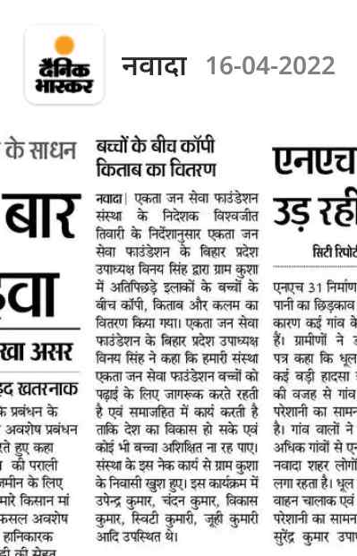 Seeing your dedication towards social work, Ekta Jana Seva Foundation organization is very impressed with you. Thank you very much on behalf of Ekta Jana Seva Foundation organization.