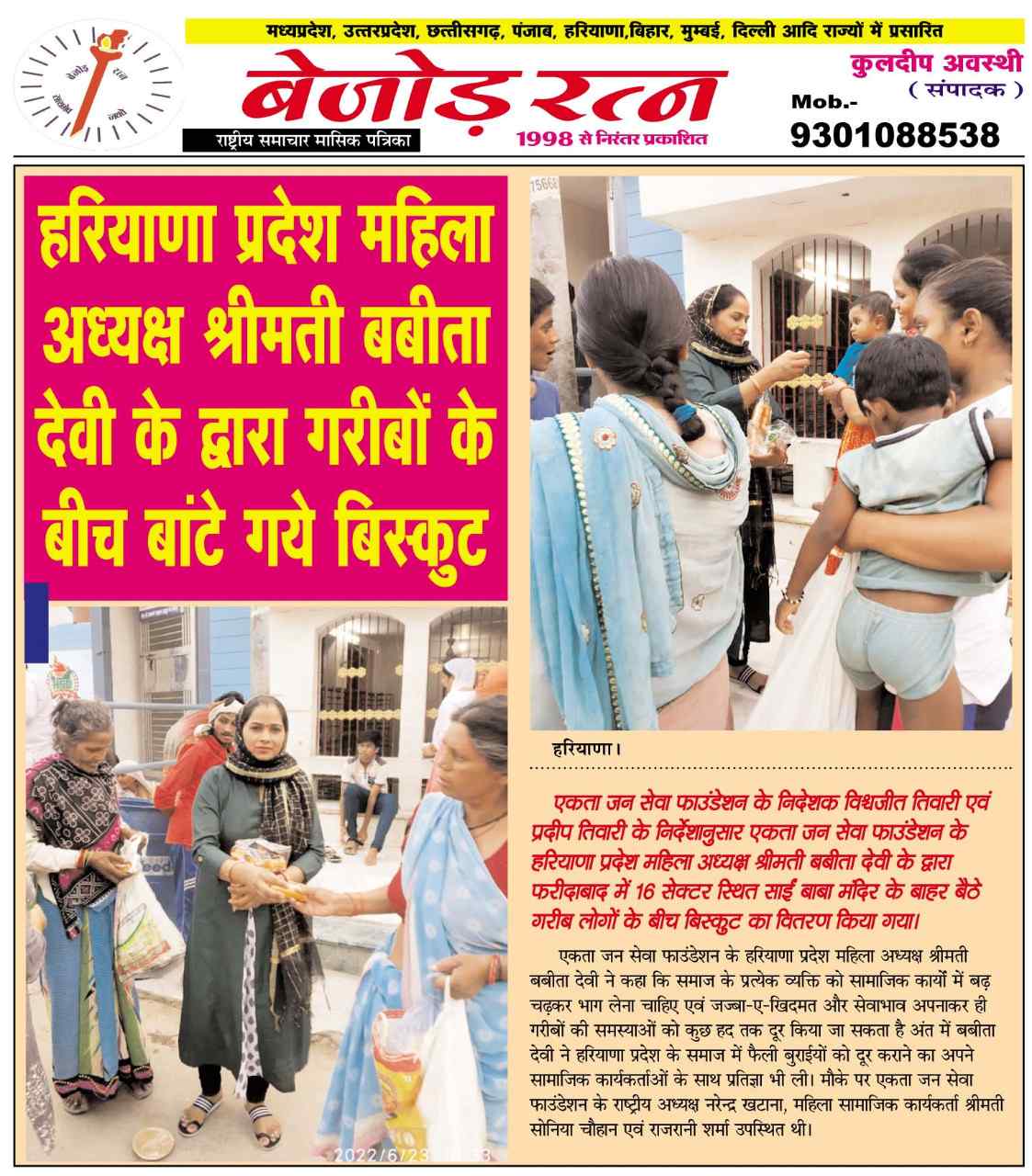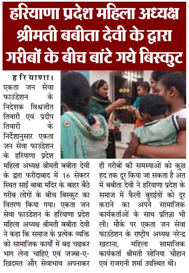 You are doing the work of social service well and you are also fulfilling the responsibility given by Ekta Jana Seva Foundation organization. Thank you on behalf of the organization.
