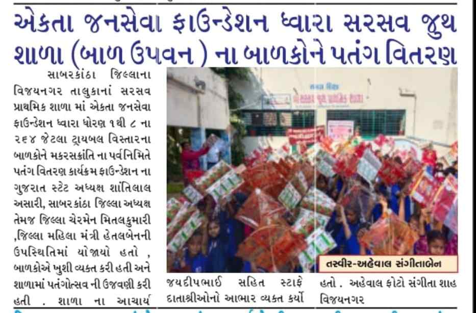 By teaching children to walk on the progressive path and being active in social work, you are bringing glory to Ekta Jana Seva Foundation. Thank you very much from the organization